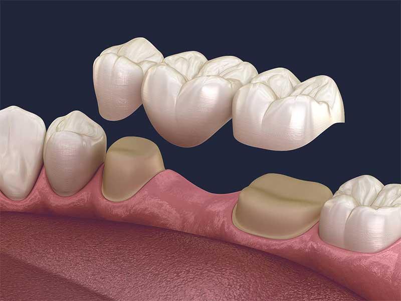 Le bridge dentaire est une prothèse fixe qui permet de remplacer une dent ou plusieurs dents absentes. C'est un ensemble de couronnes reliées entre elles, au minimum 3. Elles reposent sur les dents adjacentes, que l'on appelle « dents piliers “.